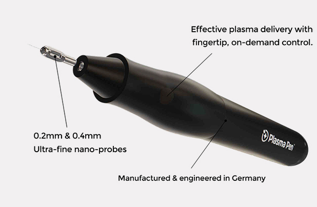Plasma Pen devices discharge low-frequency plasma energy to small areas of the skin. The process breaks down proteins in the skin, encourages tissue regeneration by stimulating fibroblast activity in the dermis and collagen production resulting in tissue contraction (tightening).