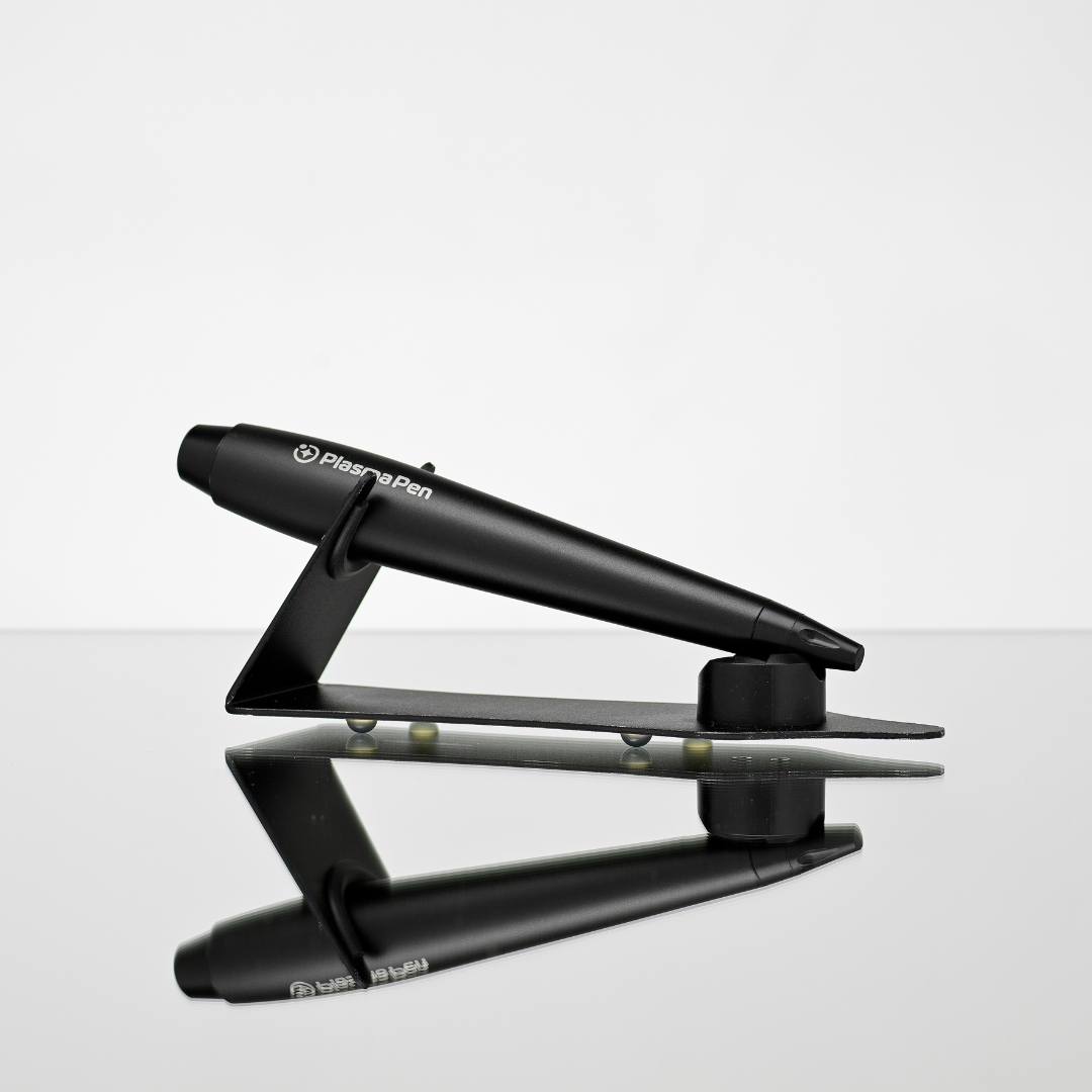 Ergonomically designed black high gloss plastic docking station/holster for all PlasmaPen™ and HyaPenPro™ devices. Designed to rest, support, protect and showcase your premium device in an elevated position upon your workstation.