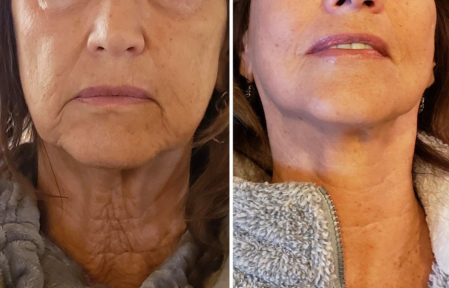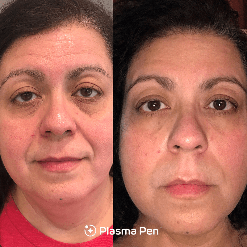 Here, the client had lower facial non-surgical face contouring treatment with PlasmaPen, visibly tightening the client’s skin and contouring her jawline.